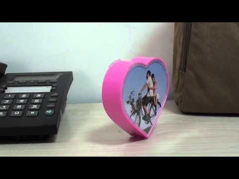 Рамка для фотографий - вращающееся сердце представляет собой фигуру в форме сердце, с двух сторон которого имеются специальные окошечки для фотографии, размером 10,5 х 9 см (форма - сердце). Каждая фотография прикрывается прозрачным пластиком, который, также и придерживает ее. Внизу фоторамки, размещено специальное колесико, вращающее его вокруг оси. Вращающий механизм работает от трех батареейк типа АА. Батарейки вставляются в специальные ячейки, расположенные на одной из сторон сердца под фотографией и защитным пластиком.