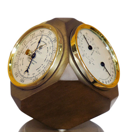 Барометр имеет циферблат с измерениями, где в аккуратном окошечке видны механизмы прибора. Таким образом, барометр выглядит, как настоящий старинный метеоприбор. Его можно повесить на стену за стилизованное под старину кольцо. Точность показателей можно поднастроить (рекомендуется делать оч. аккуратно). Если стрелка, вам показалось, стоит на месте, просто постучите слегка по стеклу, чтобы снять элементарную статику. Барометр называют "предвестник погоды ", он всегда покажет точную погоду и станет полезным прибором в доме.