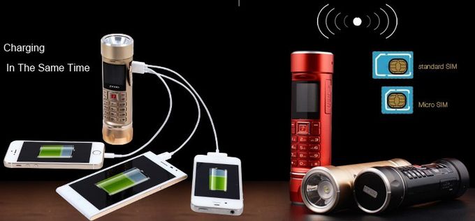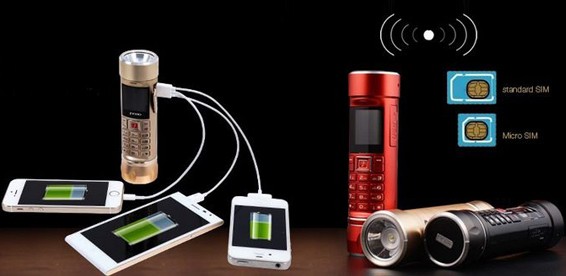 Телефон фонарик A7+ Torch Phone это чудо комбайн, одновременно мобильный телефон, светодиодный LED фонарик, MP3 плеер, громкая мини колонка, мобильная зарядка Power Bank мощностью 7200mAh (можно заряжать от него другие USB устройства), FM-радио, Bluetooth, фото видеокамера 0.3 пикселя и это все в одном. Поддерживается 2 симкрты, одна из которых микро-сим, а также карты памяти MicroSD до 32гб.