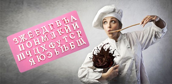 Форма имеет 33 ячейки в виде букв. Выпечку из такой формы вынимать легко и просто.