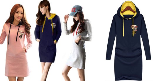 Платье с капюшоном позволяет в любой обстановке чувствовать себя непринужденно.