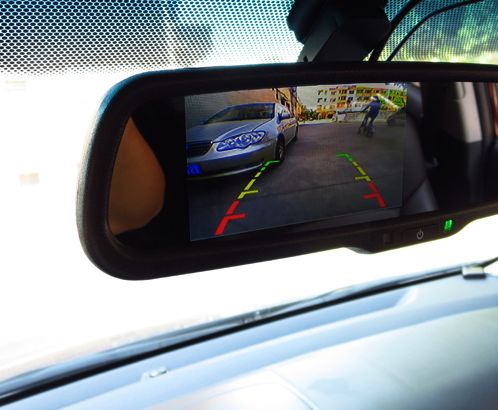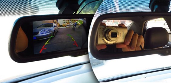 Зеркало со встроенным монитором совмещает в себе салонное зеркало заднего вида и дисплей 4,3 дюйма, на который выводится изображение с внешних камер. В устройстве предусмотрено 2 видеовхода, за счет чего вы можете подключить к нему не только парковочную камеру заднего вида, но и фронтальную камеру или видеорегистратор. Важная особенность модели: когда монитор выключен, зеркало имеет ровную отражающую поверхность. То есть та область, где появляется картинка с камер, абсолютно незаметна, и девайс выглядит как совершенно обычное зеркало заднего вида. И не привлекает к себе лишнего внимания со стороны.