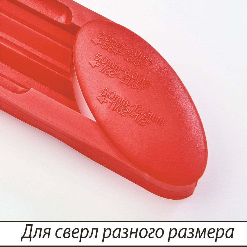 Особенность точила для сверл в том, что оно выдерживает задний угол сверла по металлу в 118 градусов, что крайне трудно сделать вручную. Данный прибор подходит для дрелей и шуруповертов с номинальной частотой вращения 2000-3500 об/мин. Размеры направляющей втулки для сверла: от 5/64 до 13/64, от 7/32 до 21/64, от 11/32 до 1/2. Очень компактный размер позволяет хранить его даже дома в коробке с инструментами.