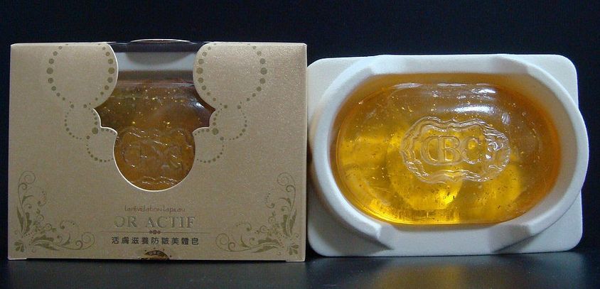 Одним из активных компонентов мыла являются частицы золота, положительное действие которых на кожу трудно переоценить. Ионы золота стимулируют микроциркуляцию, обогащают клетки кислородом, выводят свободные радикалы, после смывания пены на теле остается легкая вуаль из золотистых крупинок, она придает коже красивый цвет и мягкое мерцание.