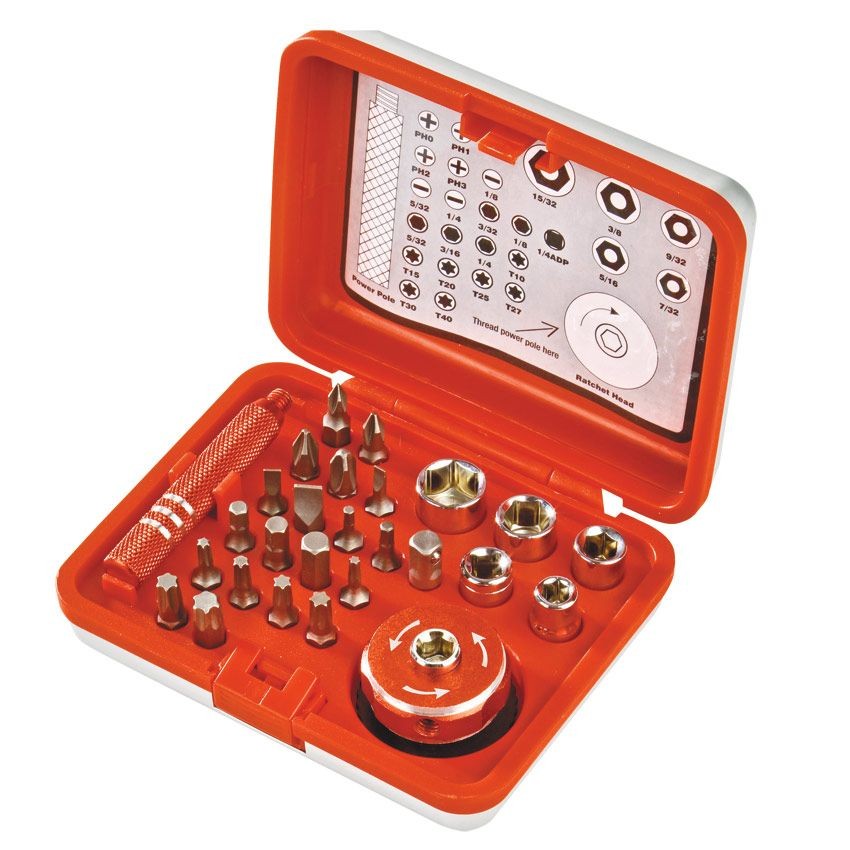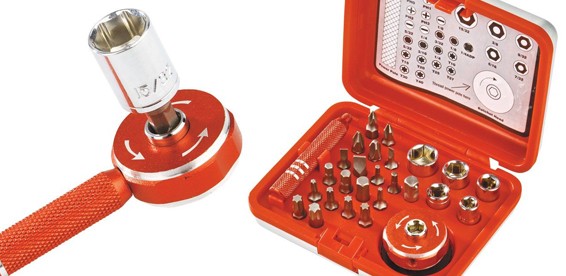 В комплекте: 25 предметов (включая трещотку), пластиковый кейс.