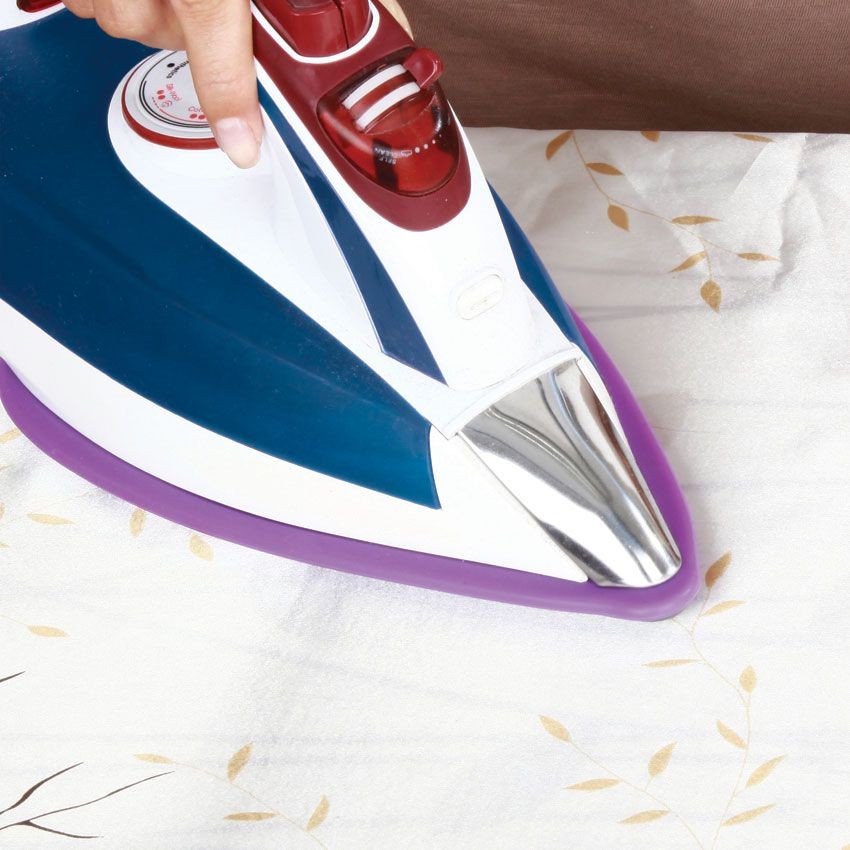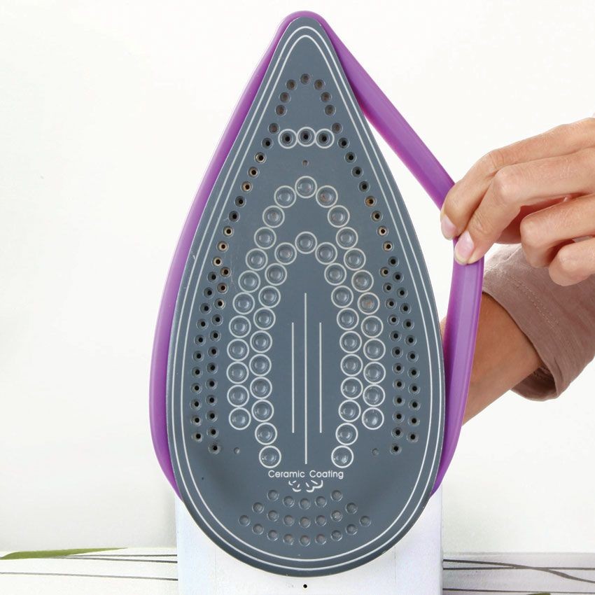 Съемная накладка на подошву утюга сделана из прочного жаростойкого силикона. Она защищает чувствительные и набивные ткани от слишком высокой температуры и предотвращает появление лас (блестящих участков на одежде). С такой насадкой вы не обожжете руку о край утюга.
