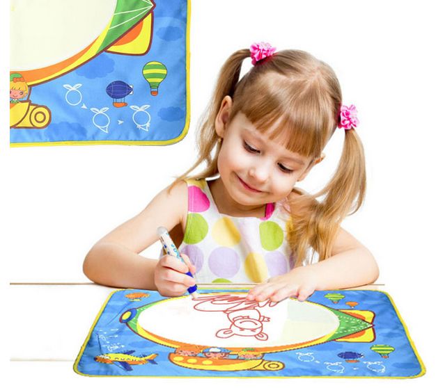 На ковриках для рисования водой можно рисовать прилагающимся к ним карандашом-маркером, кисточками, мокрыми ручками и ножками. Маркер наполняется обычной водой из под крана. Проведите им по коврику и останется яркий разноцветный отпечаток. В течение 5-7 минут все рисунки исчезают, и можно рисовать снова и снова. И при этом руки и одежда Вашего художника всегда останутся чистыми.