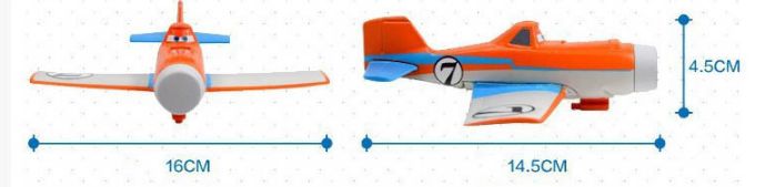 Главный герой мультфильма Disney Самолеты — кукурузник Дасти, мечтающий покорять небесные вершины, соревнуясь с профессионалами. Функциональная игрушка Дасти является точной копией самолета, выполнена из высококачественного пластика и запускается с помощью специального пистолета.