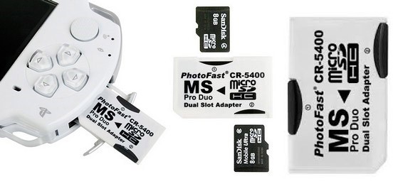 С помощью адаптера для ДВУХ карт памяти MS Pro Duo PSP Card Dual 2 Slot Вы легко и быстро сможете переносить информацию.