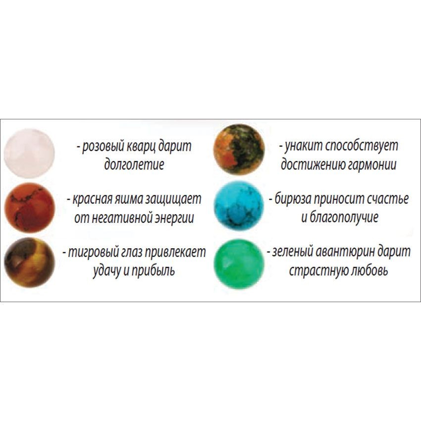 Состав: нерж. сталь, натуральные камни (зеленый авантюрин, бирюза, розовый кварц, тигровый глаз, красная яшма, унакит)