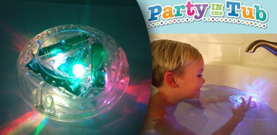 Корпус игрушки для купания Party in the Tub изготовлен из ударопрочного водостойкого пластика. Разноцветное световое шоу обеспечивают долго работающие светодиоды. Ребенок может смотреть на игрушку, крутить ее, погружать под воду до самого два ванной.