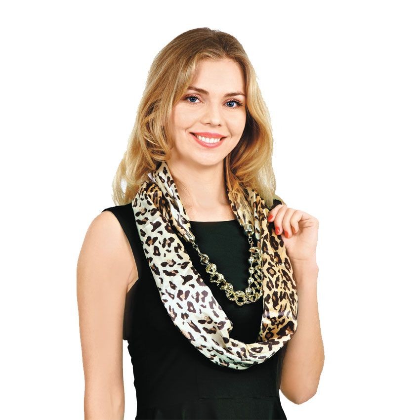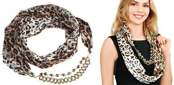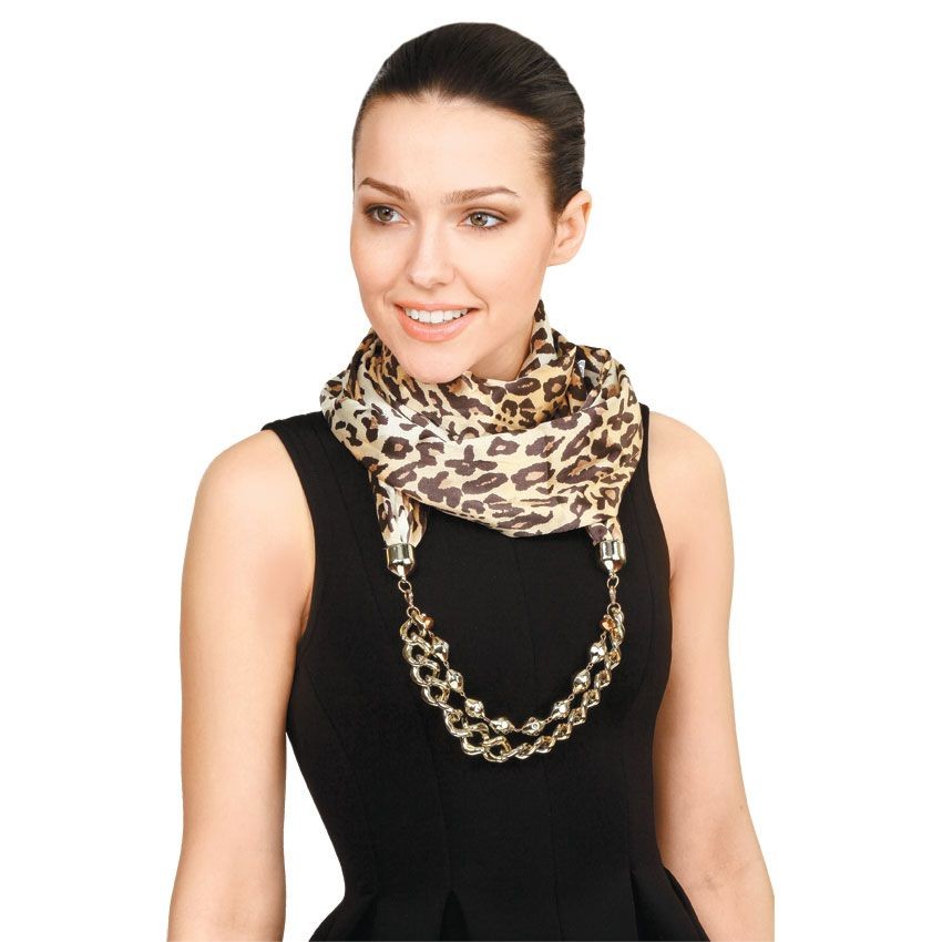 Шарф-ожерелье – это новый писк моды и аксессуар 2 в 1! Это универсальная деталь гардероба, которая прекрасно сочетается с одеждой любого стиля. А способов надевать и повязывать его – великое множество, так что разнообразие образов вам обеспечено! Теперь вам не составит труда выделиться из толпы и привлечь к себе внимание: вам поможет и фасон, и яркий леопардовый принт.