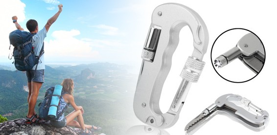 Карабин нож с фонариком послужит прекрасным подарком мужчине, а также пригодится в любом походе. Этот карабин удобно использовать в качестве стропореза, а также позволяет подвешивать вещи. Его можно повесить на рюкзак или зацепить, например за ремень.