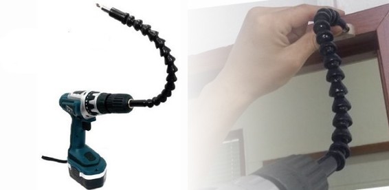 Смена насадки в рабочем органе инструмента занимает секунды. Насадка используется в ситуациях когда габариты дрели или шуруповёрта не позволяют подлезть к месту сверления. Гибкий вал также используется в нестандартных ситуациях, например, если нужно закрутить или просверлить сверлом с шестигранным хвостовиком, через небольшую щель или отверстие.