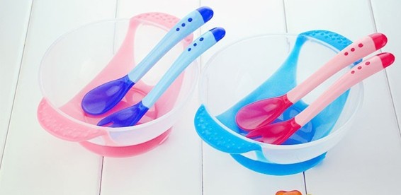 Набор из ложечки и вилки, изменяющих цвет, позволяет проконтролировать температуру питания, которое вы даете малышу, а также тарелки с присоской, которая не позволит малышу неосторожным движением перевернуть её. Ложки изготовлены из материала, который меняет цвет под воздействием тепла: чем ярче цвет, тем выше температура. Вам просто нужно поместить ложку в емкость с питанием, и через некоторое время вы будете знать, можно ли кормить вашего ребенка.