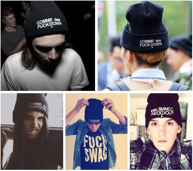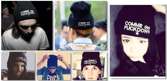 COMME des FUCKDOWN – это слоган, который впервые прогремел в 2004 году. Этим слоганом дизайнер призывал попуститься и не тянуться до супер модных тенденций высокой моды. COMME des FUCKDOWN впервые появился на бейсболках, снэтбеках и шапках в 2004 году, однако, тогда не получил особой славы и с нетерпением ждали своего звездного пути. Все изменилось за следующие восемь лет. Уличные модельеры начали обращать внимание на реперов, в то время как реперы искали поддержки от известных уличных брендов, после этого их сотрудничество стало обычным делом для двух сторон – это позволяло им обоим становиться известными.