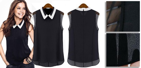 Симпатичная, легкая блузка черного цвета с коротким рукавом. Такая блузка прекрасно подойдет для создания стильного делового образа. Она прекрасно сочетается с юбками и брюками. Короткий рукав и отсутствие большого воротника – это отличный повод для разбавления вашего образа дополнительными аксессуарами.