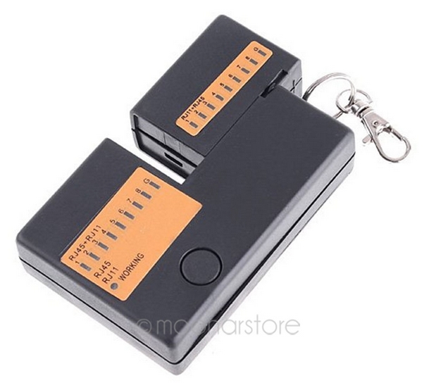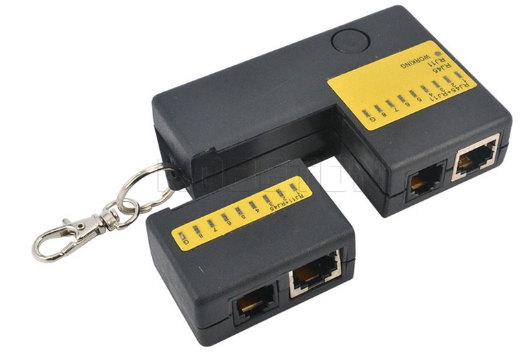 Компактный кабельный сетевой тестер позволяет проверять распайку (обжим) коннекторов RJ45 и RJ11, а также сети категории 5 и 6. Питание - батарея типа "Крона" 9В (приобретается отдельно). Индикация - 9 светодиодов.