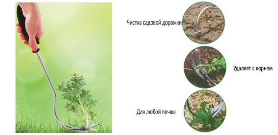 Другие инструменты могут срубить стебель или сломать. А удалитель сорняков подхватывает его и вытаскивает из земли сразу с корнем! Имеет удобную эргономичную ручку.