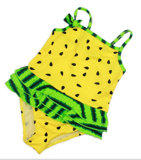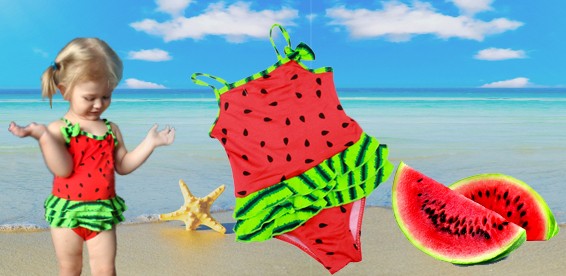 Этот забавный купальник обязательно понравится девочке, ведь теперь можно наряжаться даже на пляж. А родителям будет спокойнее, так как яркий арбузный рисунок видно издалека, а значит, ребёнок не потеряется.