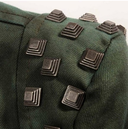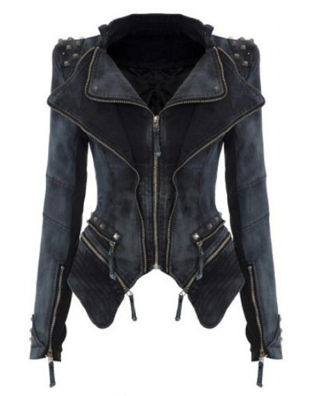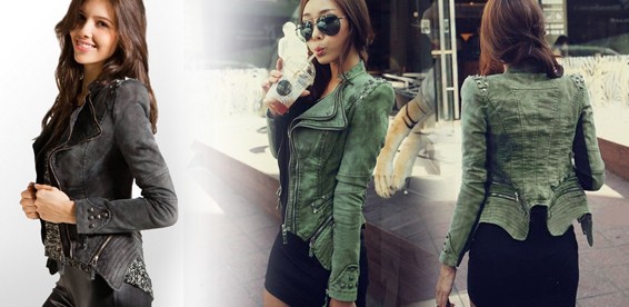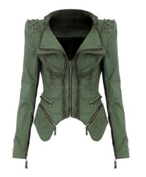 Стильная куртка с заклёпками на плечах и застёжкой на молнию.