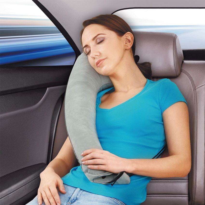 Чтобы спать было удобно даже в дороге, используйте эту надувную подушку. Она легко надувается и крепится к спинке кресла в самолете и к подголовнику сиденья в автомобиле. Стабилизирует позвоночник и обеспечивает комфортный сон.