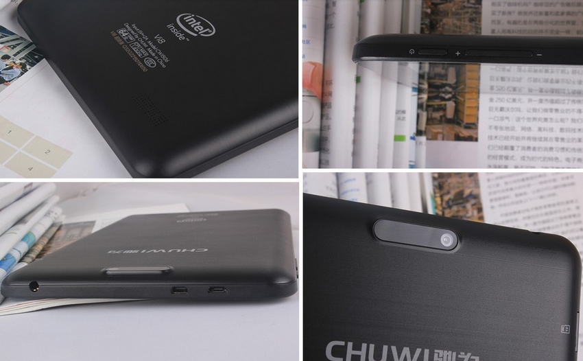 Над экраном имеется фронтальная камера и светодиодный индикатор событий. Под дисплеем находится сенсорная кнопка «Windows». Задняя крышка пластиковая и имеет матовую нескользскую поверхность. В верхней её части видим тыльную камеру без вспышки, в нижней – динамик, название модели и логотип Intel, который указывает нам на производителя процессора. Сама крышка не съёмная. На верхнем торце имеем разъем для наушников и разъем micro-USB для подключения OTG-кабеля или зарядного устройства. Кнопки включения/блокировки и громкости находятся на левом торце. В верхней части правого торца расположен слот для карт памяти. Также имеется HDMI-выход.