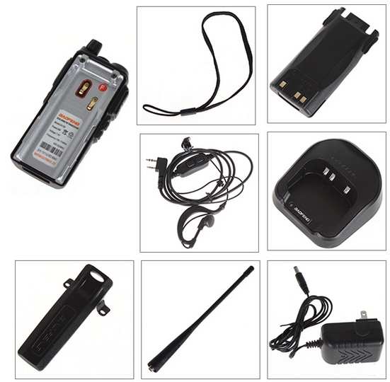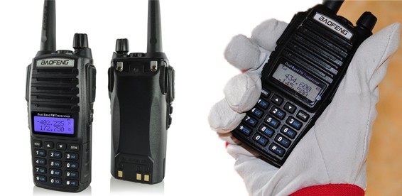 Baofeng UV-82 - рация VHF/UHF, диапазон частот 136-174 МГц, 400-520 МГц, мощность передатчика 5 Вт, питание Li-Ion-аккумулятор, количество каналов 128, поддержка кодирования CTCSS, DCS, DTMF, подключение гарнитуры.