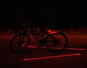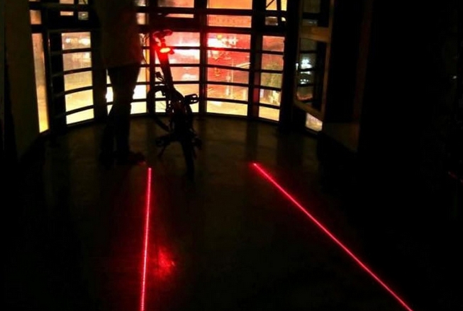 Велофонарь оснащен лазерной подсветкой, которая представляет собой 2 луча по обе стороны велотранспорта, тем самым образуя лазерную велодорожку. Режим свечения лазера можно регулировать.