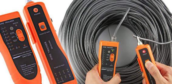 Кабельный трекер - не всем известный, но очень полезный инструмент, позволяет найти из множества кабелей нужный, а также искать, где проложен нужный кабель по кабельканалам. Передатчик подключается к нужному кабелю крокодилами или разъёмом RJ и излучает в кабель высокочастотный сигнал.