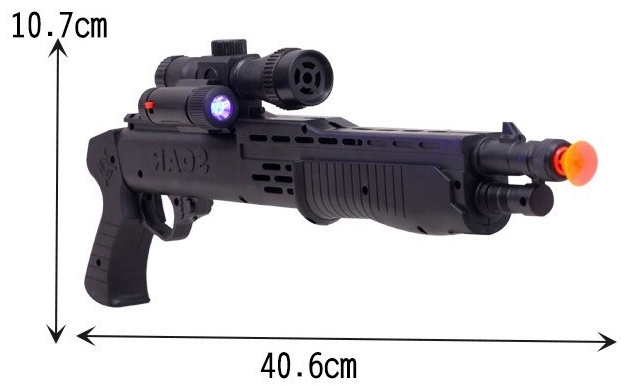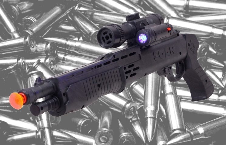 В комплект входит дробовик, прицел с фонариком, 3 присоски и 5 пулек.
