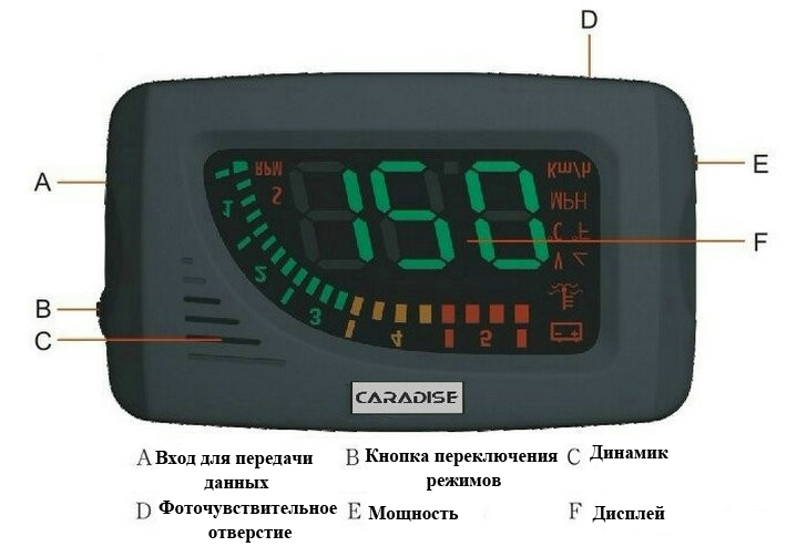 Удобный цифровой дисплей и простота установки проектора. Автоматическая регулировка яркости дисплея в зависимости от окружающей среды. После запуска автомобиля автоматически отображается напряжение батареи.