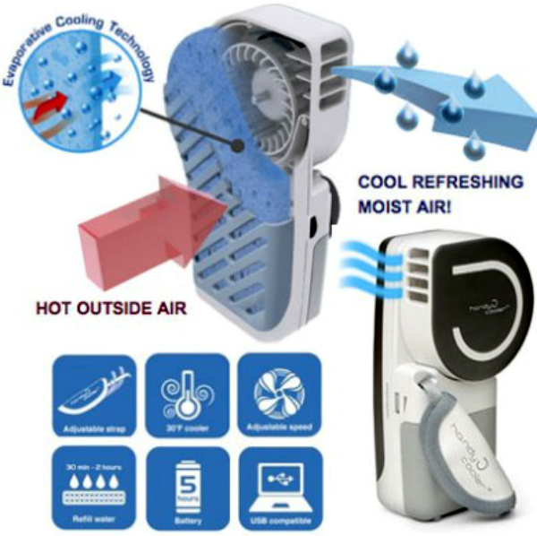 Предлагаем Вашему вниманию долгожданную новинку - портативное охлаждающее устройство или персональный мини-кондиционер Кулер. Устройство представляет собой персональный вентилятор, который действительно охлаждает воздух – направляя на Вас поток сгущенного холодного воздуха за счет эффективной системы испарения воды. В среднем он понижает температуру вокруг тела и головы на 5-7 градусов.