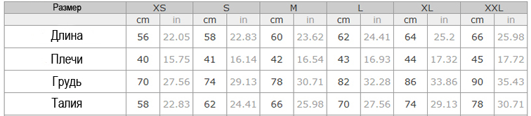 Размеры: XS, S, M, L, XL, XXL