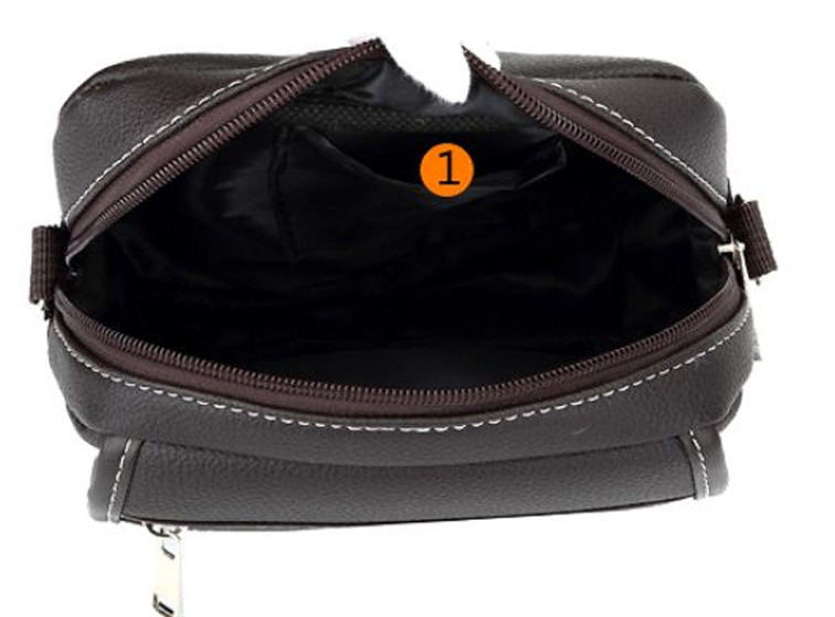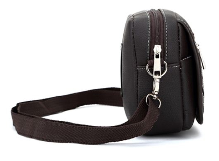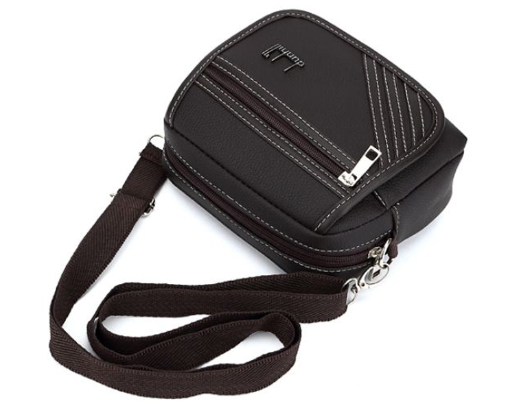 Мужская сумка для документов, кошелька и прочих необходимых вещей. Внутри находится одно отделение и кармашек для мобильного телефона. Снаружи - карман на молнии и карман под клапаном. На задней стороне располагается петля для крепления сумки на ремне.