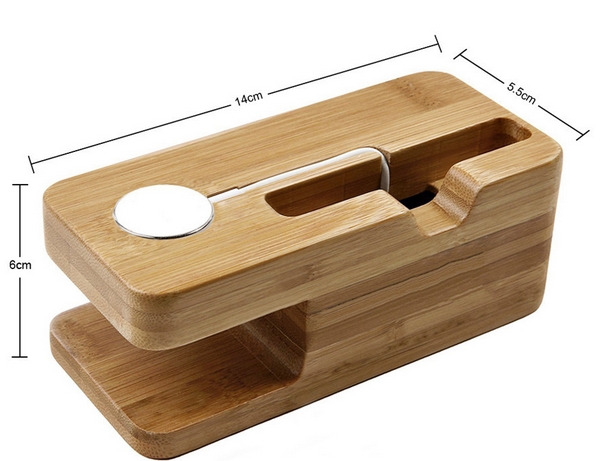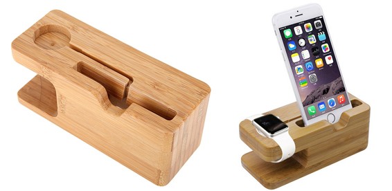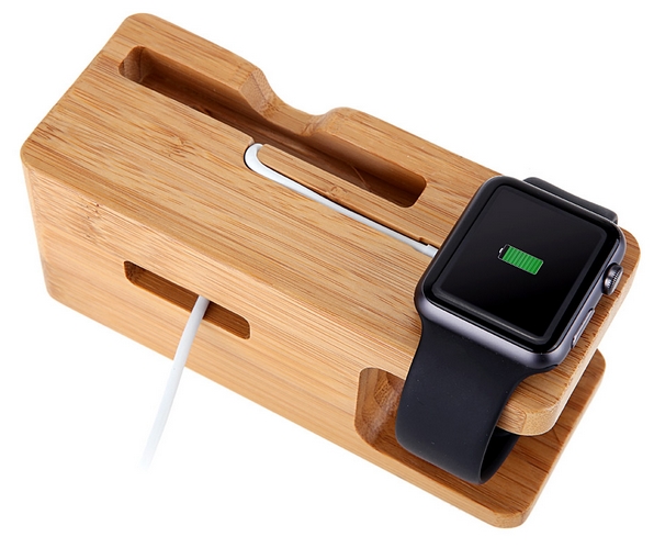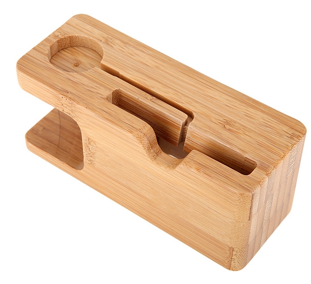 Красивая, очень аккуратная деревянная подставка ручной работы дает возможность удобно разместить рядышком сразу два гаджета — Apple Watch и iPhone.
