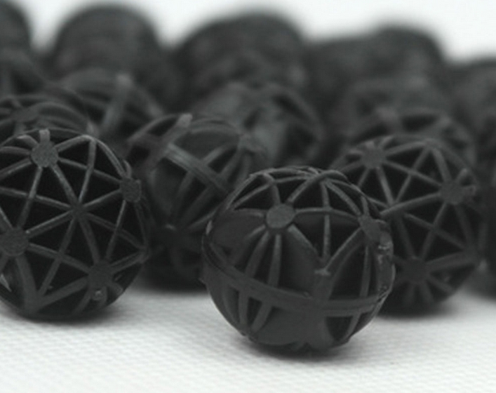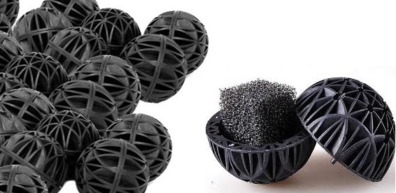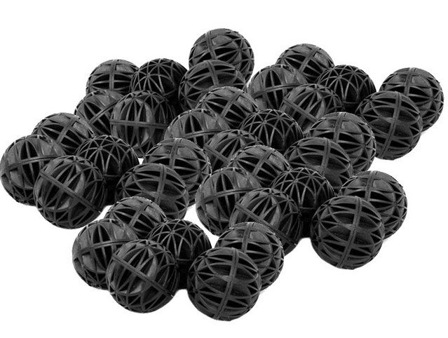 Био-шары, для аквариумов с проточными биофильтрами. Шарики являются оптимальным наполнителем для биологических фильтров. Опыты подтвердили высокую эффективность их применения в проточных фильтрах аквариумов, в денитифицирующих и иных фильтрах. Продуманная "многоплоскостная" конструкция с отверстиями в средней части позволяет достигать оптимального уровня омывания шариков независимо от их расположения. Общая площадь 1 литра шариков составляет 300 м2 и позволяет достигать высокой концентрации активных бактерий.
