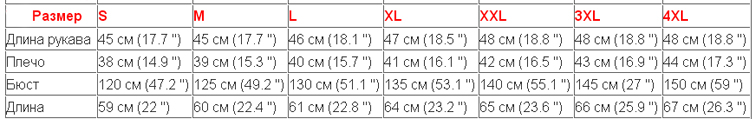 Размер: S, M, L, XL, XXL, XXXL, 4XL