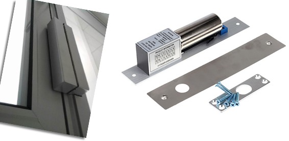 Электромагнитные замки – преграждающие устройства, основной частью которого является мощный электромагнит, а ответной – постоянный магнит или металлическая планка с высокой магнитной проницаемостью. Конструкция электромагнитных замков для дверей включает сердечник с катушкой кабеля. Когда на электромагнит замка подается постоянное питание, он притягивает ответную часть и блокирует дверь, на которую установлен. Замок закрывается по сигналу с контроллера, открывается – по сигналу или после нажатия субъектом кнопки выхода.