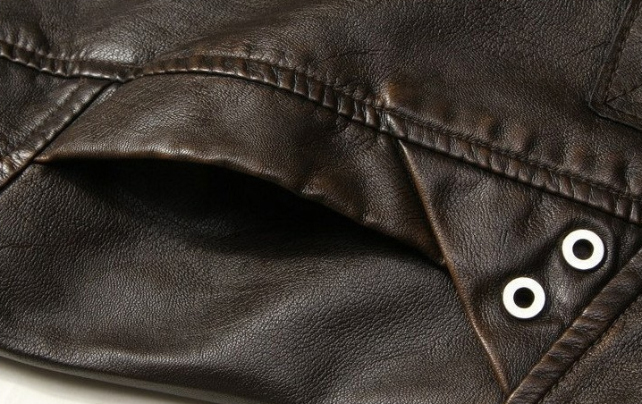 Стильная кожаная куртка на сезон весна-осень с застёжкой на молнию. Куртка имеет два наружних кармана и один внутренний. Декоративная отделка в виде молний на рукавах, заклёпок и пряжек добавляет брутальности.