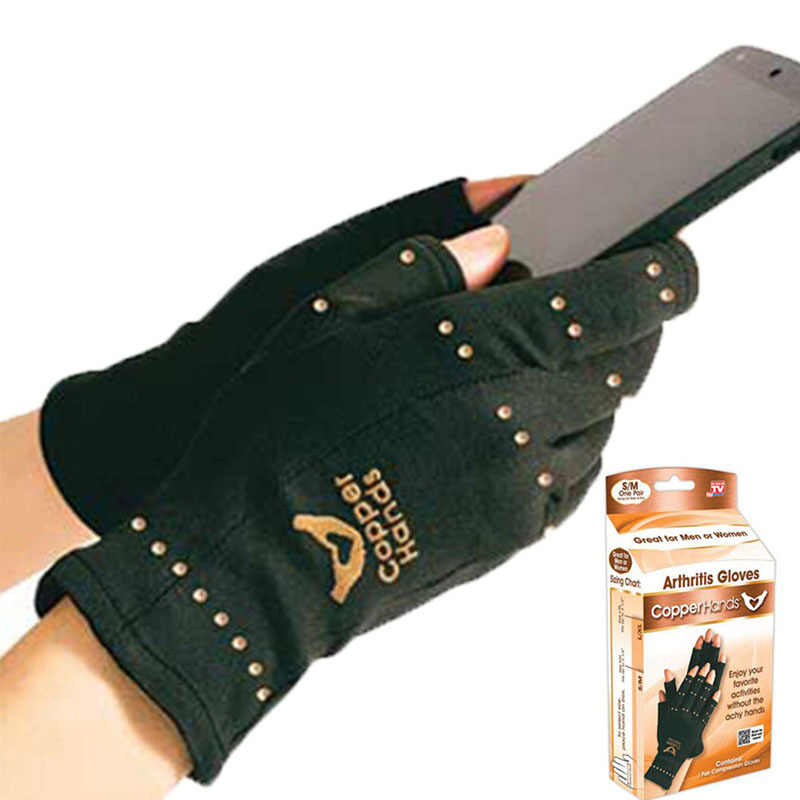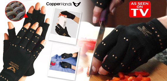 Артрит почти полностью лишает рук людей, страдающих этим возрастным заболеванием. Такие простые действия, как повернуть ручку двери, держать в руке нож или любой другой инструмент из домашнего хозяйства, не говоря уже об использовании его, становятся болезненными или просто невыполнимыми из-за потери подвижности в суставах. Компрессионный эффект перчаток Copper Hands в сочетании с лечебным влиянием маленьких медных дисков на них, позволяет во многом облегчить симптомы артрита и вернуть больных к нормальной жизни.