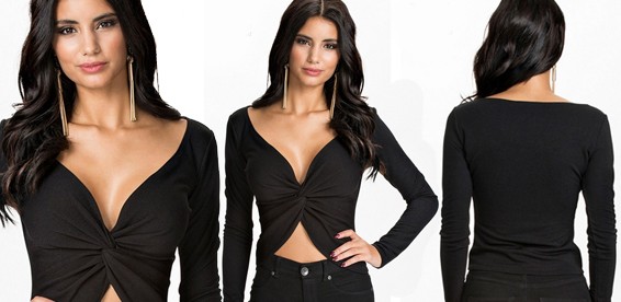 Трикотажная блузка с драпировкой в области груди. Сексуальный обтягивающий силуэт и открытый живот. Прекрасно подойдёт на каждый день и на праздничное мероприятие.