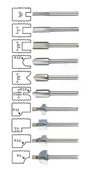 Набор фрез для обработки по дереву подходит для машины ЧПУ. Фрезы выполнены из высококачественного быстрорежущего материала.
