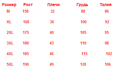 Размер: M, L, XL, XXL, XXXL, 4XL, 5XL