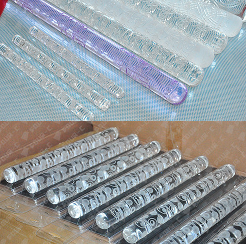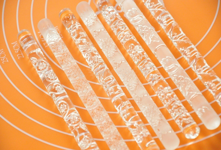 Скалка изготовлена из прочного акрила и имеет лазерную гравировку, чтобы обеспечить безупречный дизайн. С помощью скалки можно создавать различные рисунки на тесте, пластике или полимерной глине и её легко мыть.