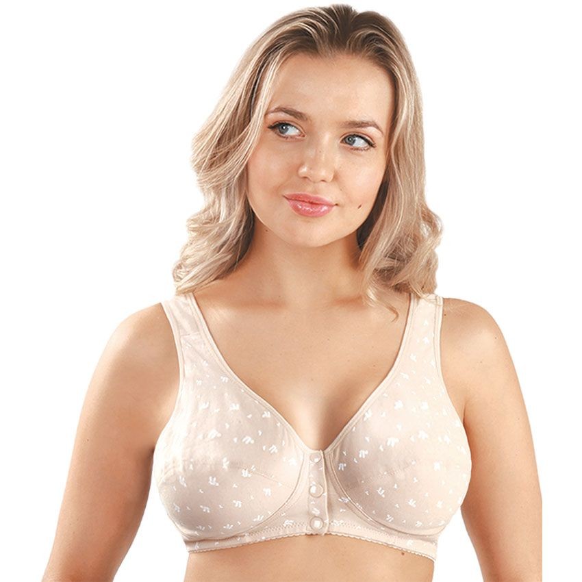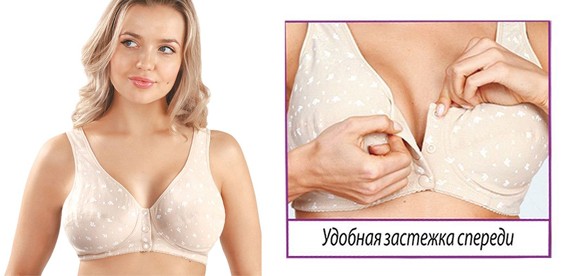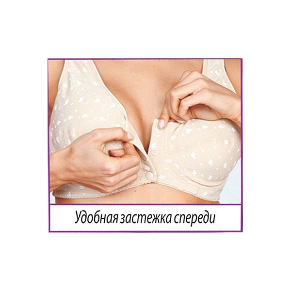 Сделанный из хлопчатобумажной ткани бюстгальтер мягко поддержит вашу грудь. Кожа в таком бюстгальтере дышит, он не прилипает к телу и не электризуется. За счет расположенной спереди застежки надевать его легко и удобно. Имеет широкие бретели, которые не врезаются в кожу и не натирают ее.
