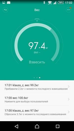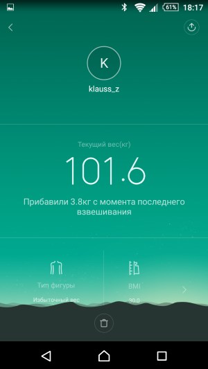 История измерений собирается в график. Внизу него находится список, при выборе на нем конкретного замера подсветится нужная точка. Рядом тут же будет просчитан BMI.
