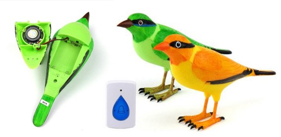 Дверной звонок с размещаемой в доме статуэткой-птицей.
