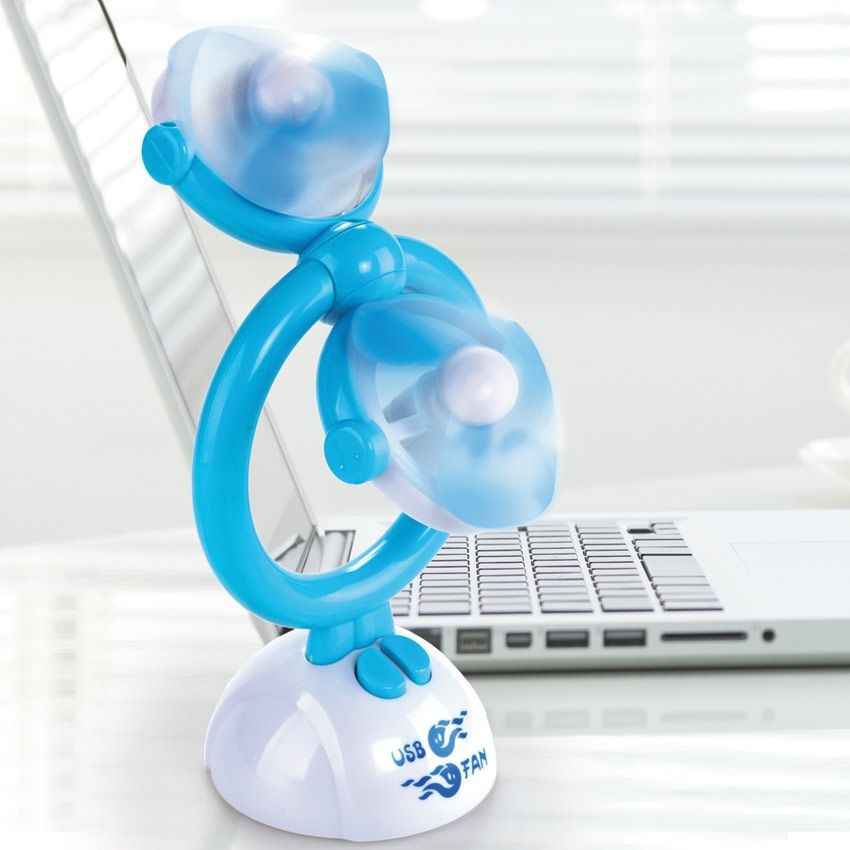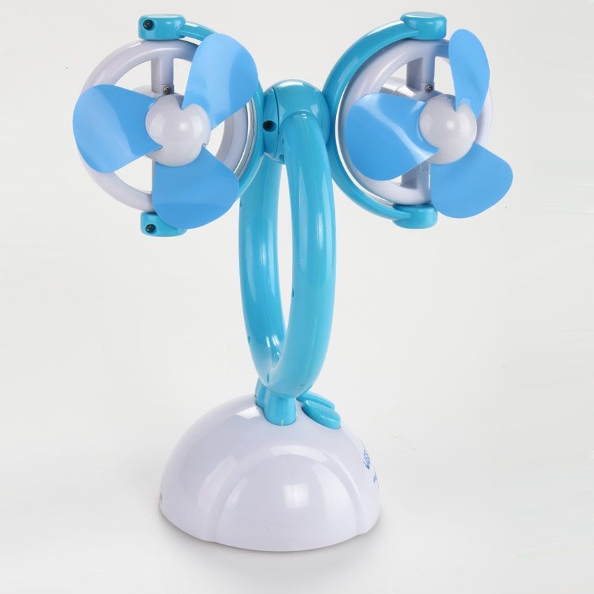 Компактный настольный вентилятор подарит вам приятную прохладу! Каждый вентилятор поворачивается на 360 градусов, имеет свою кнопку включения. Безопасные гибкие лопасти.