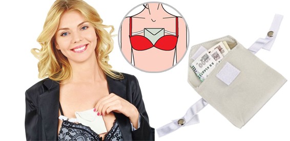 Нужно взять с собой крупную сумму денег? Держите их там, куда не доберется ни один карманник! Пристегните этот кармашек к бюстгальтеру и будьте спокойны!